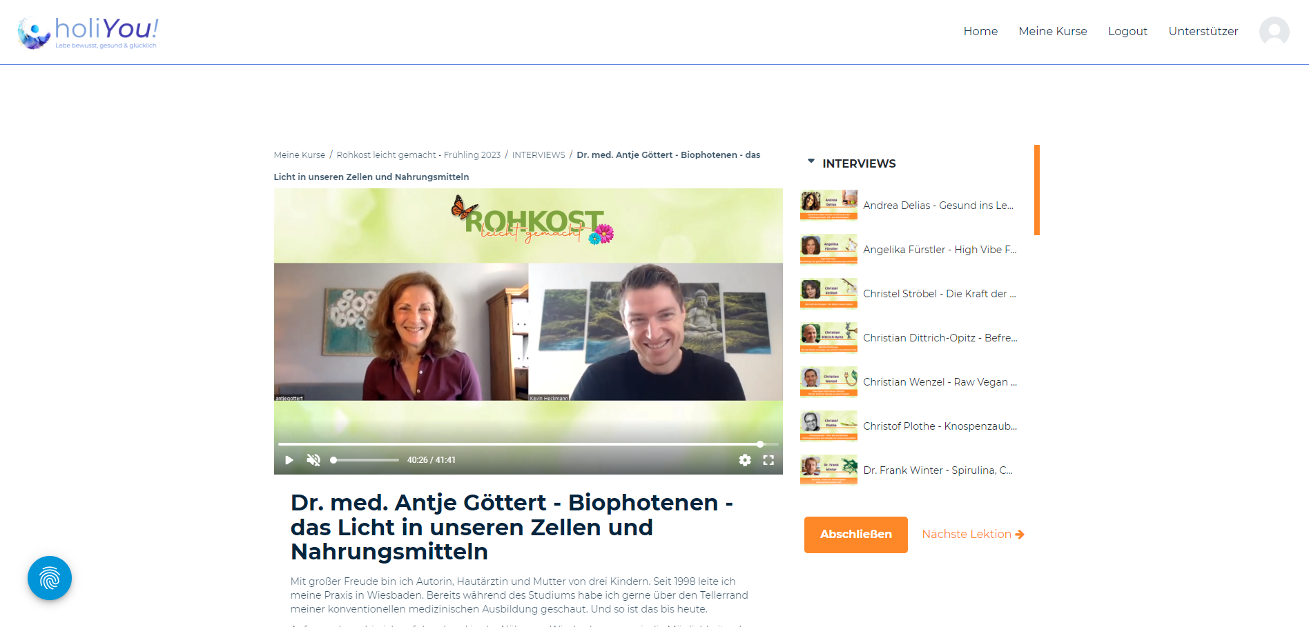 Alle 45 Experteninterviews und Zubereitungs-Videos mit spannendem Input, großartiger Inspiration und vielen praktischen Tipps stehen Dir dauerhaft und sofort zur Verfügung – Du kannst sie online anschauen oder downloaden.