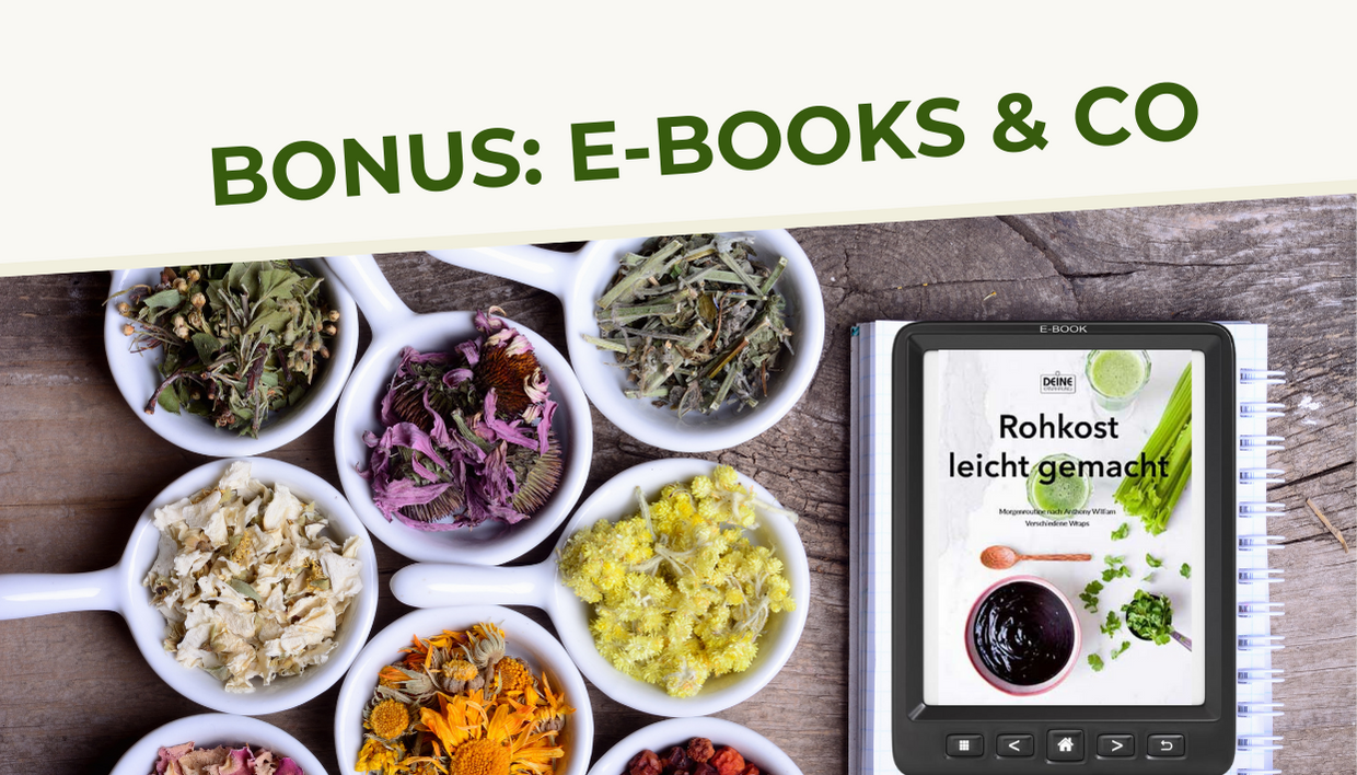 Entdecke noch mehr verborgene Schätze und sichere dir exklusive zusätzliche Folien, Ebooks und leckere Rezepte der ExpertInnen. für Dein Wohlbefinden und zur Wissensvertiefung.
